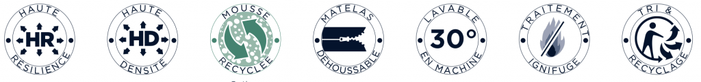 Le matelas est conforme aux normes de sécurité incendie les plus strictes. Le tissu est traité anti-feu cigarette-allumette, conforme aux normes NF EN 597 parties 1 et 2, tandis que la mousse HR est classée au feu M4. Cette double protection assure une sécurité maximale pour les utilisateurs.
